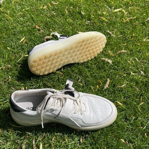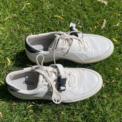 Golfschoenen van het merk ECCO (Klik op een afbeelding voor een vergroting) Ter overname voor € 25: Slechts 3x gedragen, voor mij te ruim: Ecco golfschoenen maat 41 met veter en gesp Info: Heleen Leverstein-vC 06-41552647