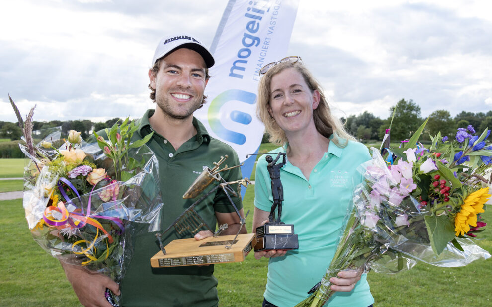 Dit zijn ze dan, de clubkampioenen-strokeplay van 2024: Maarten Verhaar en Lisanne Bögels. De winnaars met clubvoorzitter Marc Toebes (midden).…