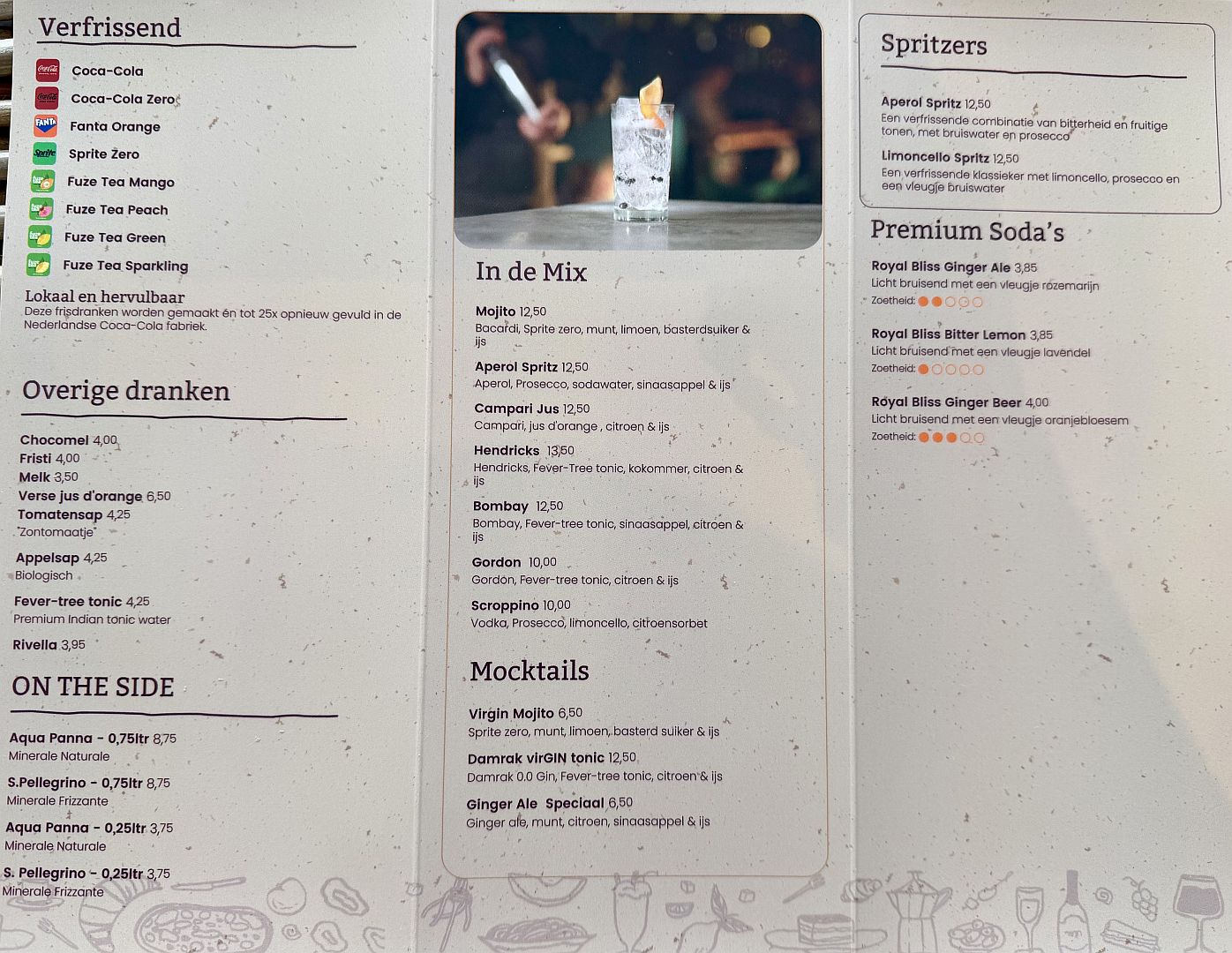 Voor het diner : Zie onze dinerkaart (voorgerechten, hoofdgerechten, desserts).