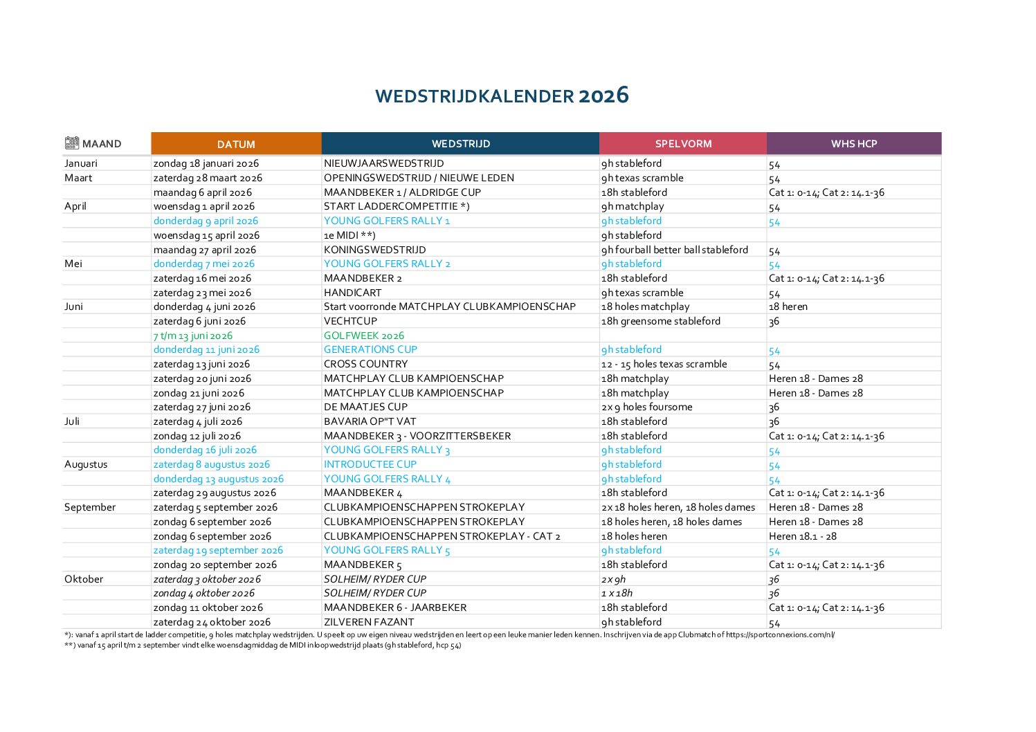 Enkele wedstrijden behoeven wellicht iets meer informatie, deze zal te zijner tijd op de website worden geplaatst.
