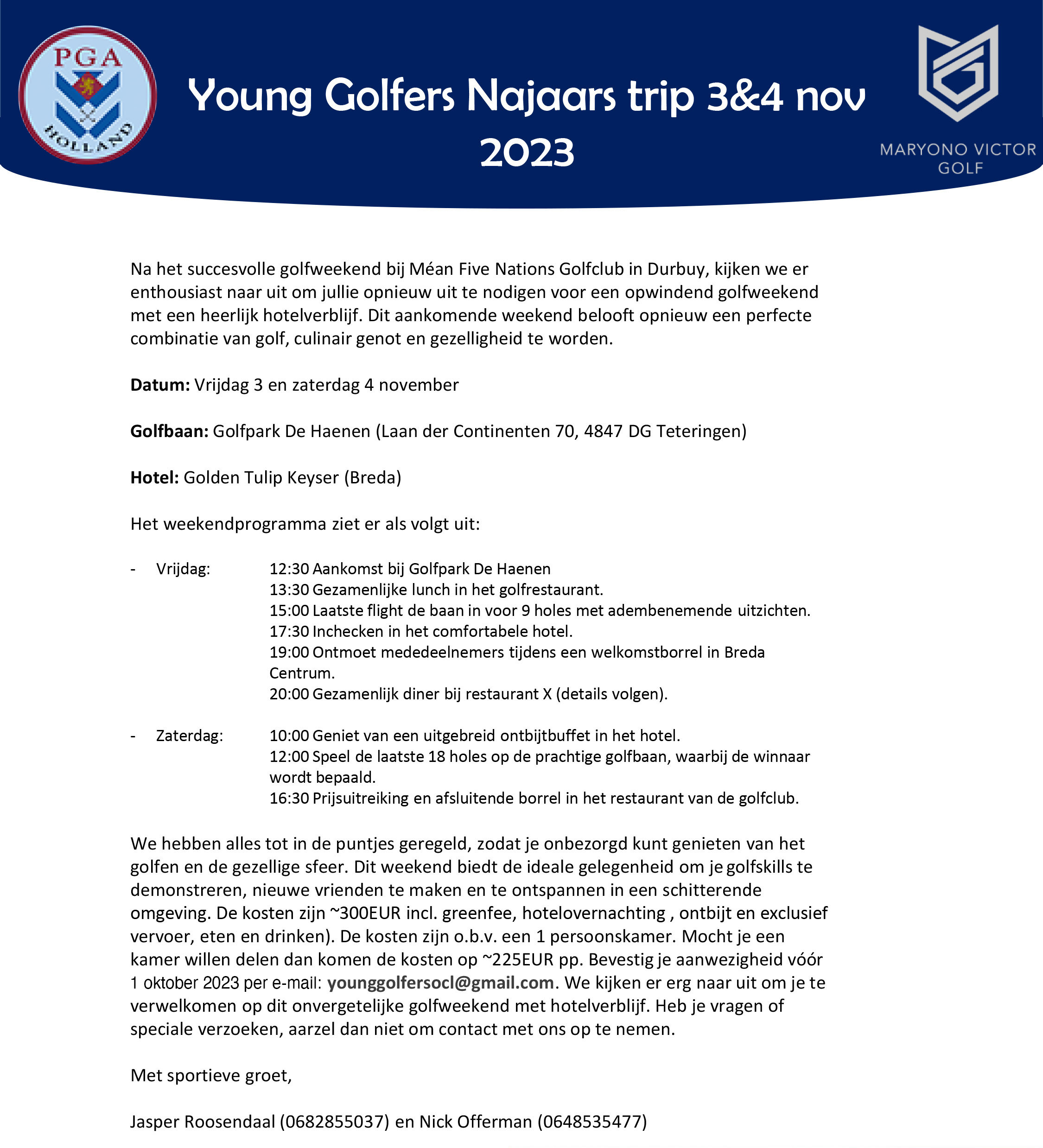 Na het succesvolle golfweekend bij Méan Five Nations Golfclub in Durbuy, kijken we er enthousiast naar uit om jullie opnieuw uit te nodigen voor een opwindend golfweekend met een heerlijk hotelverblijf. Dit aankomende weekend belooft opnieuw een perfecte combinatie van golf, culinair genot en gezelligheid te worden.